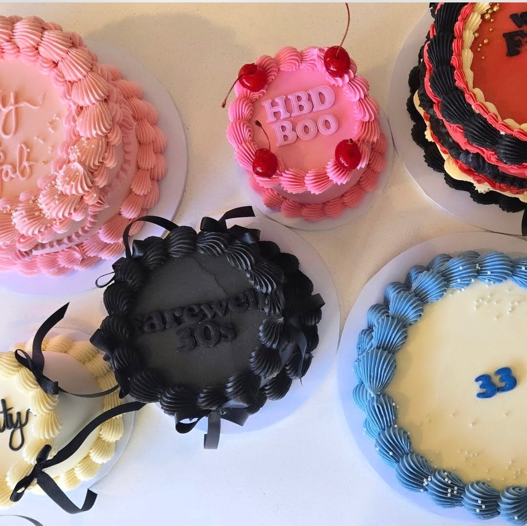 Choose your fave flavour, size and leave the rest to Ms. Butterdream to work her magic! Vintage Celebration cakes include a base colour and a single row of shell piping around the top and bottom of your cake.